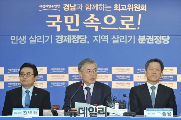 문재인 새정치민주연합 대표가 18일 오전 경남 창원시 한국산업단지공단 동남지역본부에서 열린 현장 최고위원회의에서 모두발언을 하고 있다.