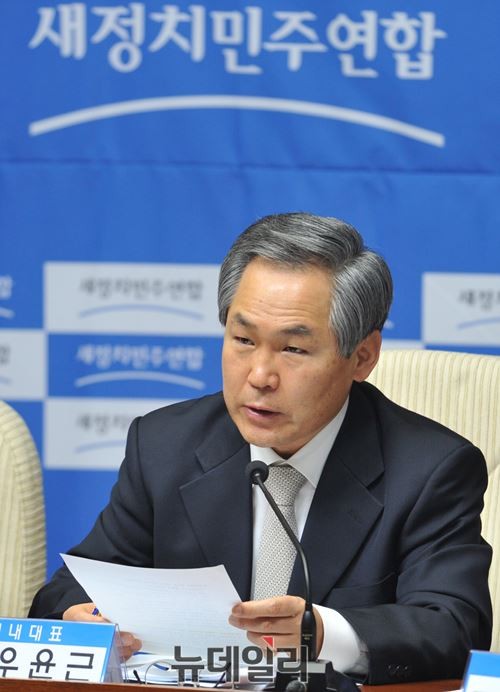 새정치민주연합 우윤근 원내대표가 20일 오전 서울 여의도 국회에서 열린 최고위원 및 시도당위원장 연석회의에서 모두발언을 하고 있다.