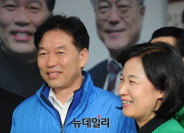 새정치연합 추미애 최고위원이 31일 서울 관악구 신림동에 위치한 정태호 후보 선거사무소를 찾아 격려와 함께 정동영 위원장에 대응할 방도를 논의했다.