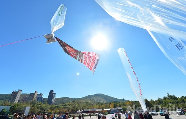 풍선이 올라갑니다. 김정은 세습 독재 타도하고, 북한 인민 해방하자.
