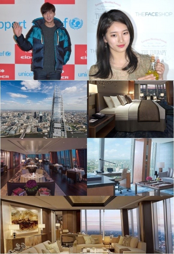 열애 중인 배우 이민호(28)와 수지(21)의 데이트 장소인 샹그리라 호텔-더 샤드에 대한 관심이 높아지고 있다.23일 오전 디스패치는 이민호와 수지가 영국 런던에서 데이트하는 현장을 포착해 현재 2개월째 열애 중이라고 전했다. 이에 두 사람의 양측 소속사는 "한달째 호감을 갖고 만나고 있다. 모두 따뜻한 시선으로 지켜봐주길 바란다"며 열애를 공식 인정했다.특히, 이민호와 수지가 2박 3일 동안 묵으며 데이트를 즐긴 곳은 영국 런던 중심에 있는 더 샤드(TheShard) 빌딩 내 5성급 호텔 샹그리라 호텔(Shangri-La Hotel)다.런던 중심부가 한눈에 보여 아름다운 전경을 조망할 수 있으며, 모스크바의 캐피털시티 빌딩을 제치고 유럽 최고층 건물로 등극했다.런던의 랜드마크인 이곳은 이탈리아 건축 디자이너 렌조 피아노(Renzo Piano)가 설계했다. 샹그릴라는 더 샤드의 34~52층에 입주해 있고, 36층에서 50층에 걸친 202개의 객실은 천장부터 바닥까지 내려오는 대형 창문이 설치돼 있어 런던 전경을 감상할 수 있다.모든 객실은 건물의 통합형 차광 시스템을 보완하는 실내 온도 조절기를 갖추고 있으며, 하루 숙박비는 약 49만원부터 116만원대까지 다양한 것으로 알려졌다.[이민호 수지 데이트 장소, 사진=뉴데일리 DB/ The Shard London 페이스북]