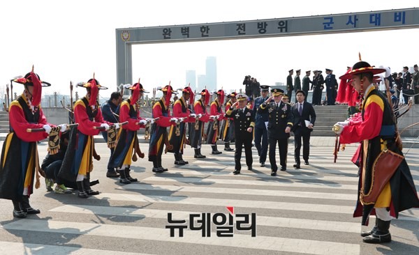마틴 뎀프시 (Martin Dempsey) 미국 합참의장이 27일 오전 서울 용산구에 위치한 합동참모본부를 방문했다. 최윤희 합창의장은 대연병장에서 마틴의장을 맞이했다.