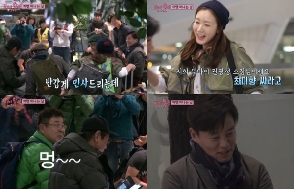 배우 최지우의 본명이 공개됐다.지난 27일 방송된 tvN 배낭여행 프로젝트 제4탄 '꽃보다 할배 그리스 편' 1회에선 설렘 가득한 여행의 첫 번째 에피소드가 그려졌다.오랜만에 다시 모인 H4와 이서진과 그들의 여행 준비 과정, 새로운 짐꾼 최지우의 섭외와 등장, 유쾌한 두바이 여행 첫날을 그려냈다.이날 최지우는 공항으로 이동하며 "어우 나 떨려"라며 긴장되는 모습을 보였다. 이어 H4 이순재, 신구, 박근형, 백일섭, 짐꾼 이서진이 눈치채지 못하게 몰래 움직였다.특히, 이서진이 공항 티켓에 '최미향'이 적혀있는 것을 발견하고 궁금해하자 나영석 PD는 임기응변으로 "두바이 관광청 소장님"이라고 밝혔다. 최미향은 최지우의 본명이다.이후 나영석 PD는 H4와 이서진에게 최지우를 최미향 가이드로 소개했다. 최지우의 깜짝 등장에 H4와 이서진은 놀라면서도 "훨씬 좋다"고 말하며 흐뭇한 미소를 지었다.['꽃보다할배' 최지우 본명, 사진=tvN '꽃보다할배 그리스편' 방송 캡처]