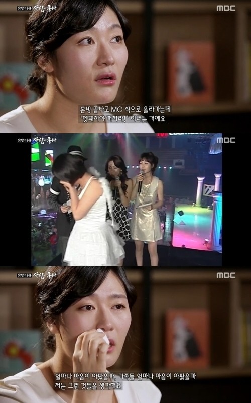 이어 "노력해서 가요 프로그램에 출연했지만 반응은 냉담했다"라며 "MC석에 오르자 누군가 '멧돼지야 꺼져라'라고 고함을 질렀다. 난 괜찮지만 그 일로 속상해 한 가족들을 생각하면 눈물이 난다"고 털어놨다.
