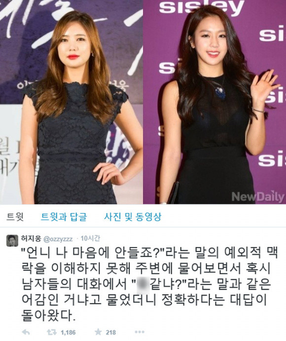 허지웅이 예원 이태임 욕설 동영상 속 대화에 대한 자신의 의견을 밝혔다.허지웅은 29일 자신의 트위터에 "'언니 나 마음에 안들죠?'라는 말의 예외적 맥락을 이해하지 못해 주변에 물어보면서 혹시 남자들의 대화에서 'X같냐?'라는 말과 같은 어감인 거냐고 물었더니 정확하다는 대답이 돌아왔다"는 글을 남겼다.허지웅이 언급한 '언니 나 마음에 안들죠?'는 지난 27일 유튜브에 올라온 이태임과 예원의 '띠동갑내기 과외하기' 촬영 당시 욕설논란의 동영상 내용 중 일부이다.이태임은 지난달 24일 제주도에서 MBC '띠과외' 촬영 중 예원이 춥지 않느냐고 묻자 "왜 반말을 하냐"며 갑자기 욕을 했고, 제작진은 촬영을 중단시킨 것으로 전해졌다. 이후 이태임은 욕설 논란으로 프로그램에서 하차했다.논란이 계속되자 이태임은 예원이 먼저 반말을 했다고 억울함을 드러냈으며, 예원 측은 반말을 한 적이 없다고 주장했다. "예원씨에게 상처 줘서 미안하고 그 순간 느껴지는 감정을 추스리지 못하고 해서는 안되는 말을 내뱉은 나 자신이 후회스러우며 깊이 반성하고 있다"고 공식 사과했다.하지만 알려진 것과 달리 유출된 동영상에서 예원이 이태임에게 반말과 욕설을 하는 장면이 담겨지면서 2차 파문이 일었다. 심지어 예원의 '우리 결혼했어요' 하차 요구가 빗발치고 있는 상황이다.[허지웅 예원 사건 언급, 사진=뉴데일리 DB/ 허지웅 트위터 캡처]