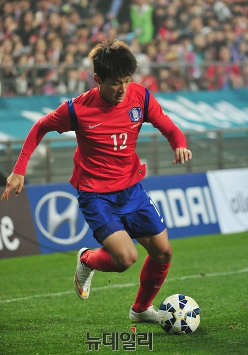 대한민국 축구 국가대표팀 한교원 선수가 31일 오후 서울 마포구 상암 월드컵경기장에서 열린 뉴질랜드와의 평가전에서 경기에 임하고 있다.