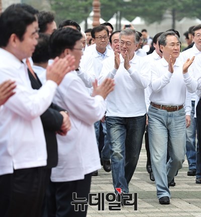 [포토] 입장하는 문재인 대표와 우윤근 원내대표