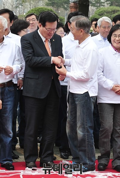 [포토] 인사 나누는 정의화 국회의장과 문재인 대표