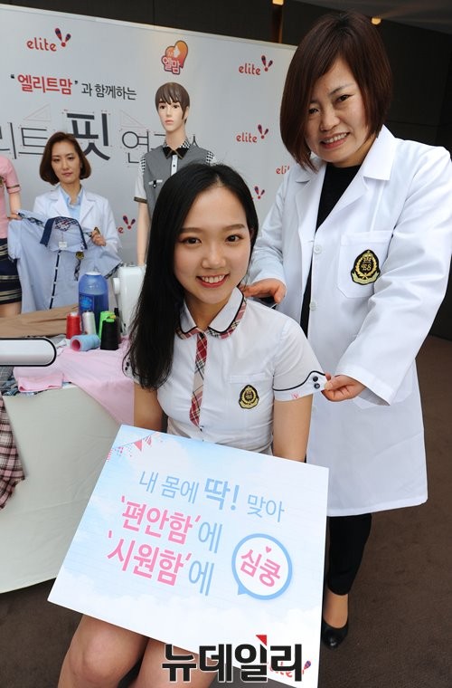 엘리트학생복이 7일 오전 서울 중구 더 플라자호텔에서 학부모와 자녀들이 함께 교복을 연구하는 [교복 핏연구소]를 통해 시원하고 편안한 소재가 적용된 여름 교복을 선보이고 있다.