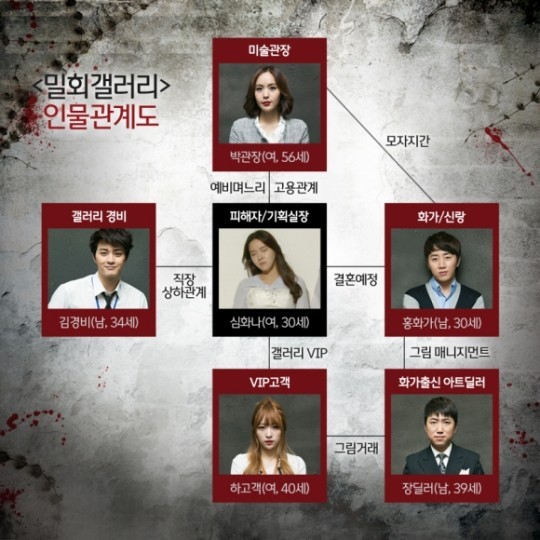 이 살인 사건을 배경으로 홍진호는 심화나의 남편 '홍화가'(30), 박지윤은 갤러리 주인 '박관장'(56), 하니는 재벌가 사모님 '하고객'(40), 장동민은 아트딜러 '장딜러'(39), 김지훈은 '김경비'(34) 등으로 변신했다.