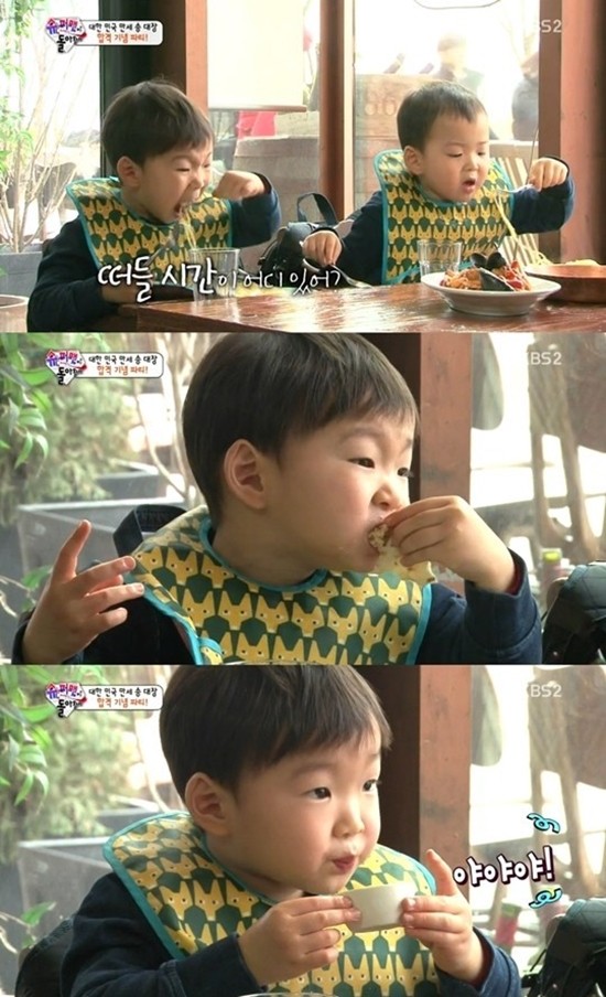 둘째 민국이는 송일국이 피클을 먹여주자 어깨춤을 췄고, 장남 대한이는 꿀 통을 통째로 들고 마셔 웃음을 자아냈다.