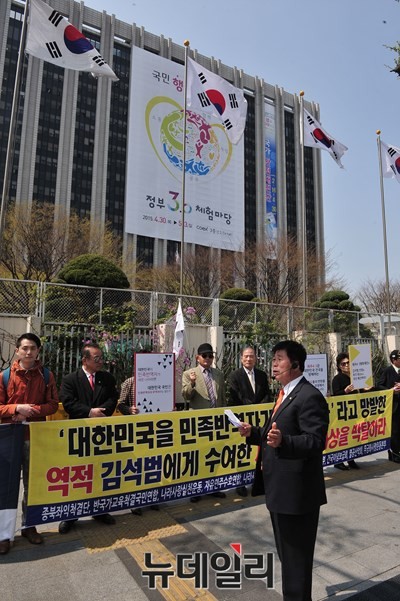 [포토] 정부종합청사 앞에서 김석범 규탄 집회 갖는 애국단체들