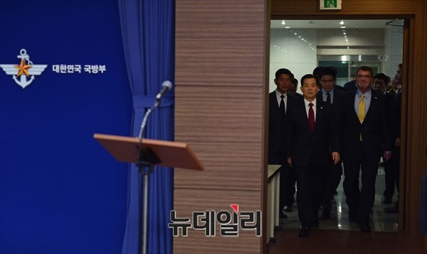 [포토] 기자회견장에 들어서는 한-미 국방부장관