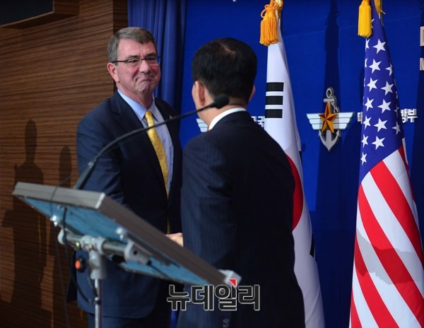 이날 애쉬턴 장관은 한민구 국방부 장관을 만나 한-미 국방장관회담을 마치고 공동 기자회견을 가졌다.