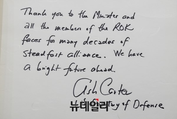 [포토] 애쉬턴 카터 미국 국방장관의 방명록