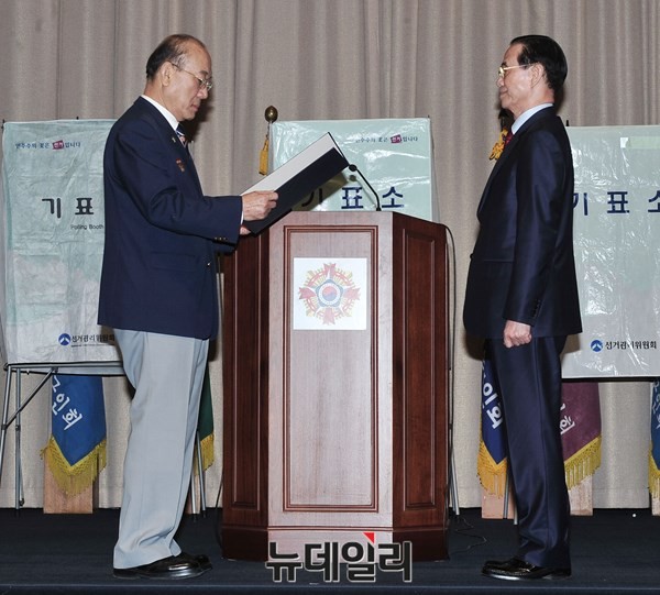 [포토] 당선증 수여받는 제향군인회 조남풍 후보자