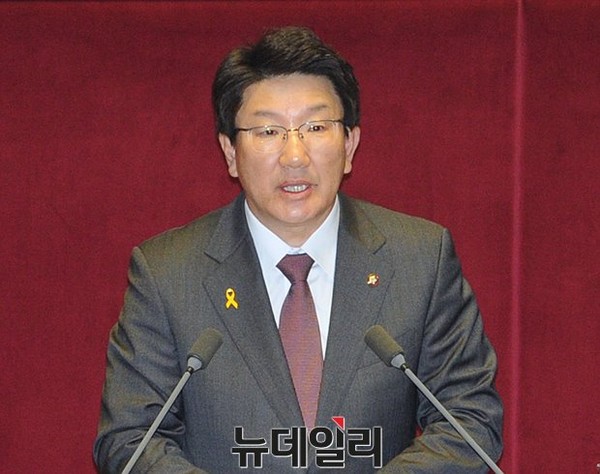 새누리당 권성동 의원이 13일 오후 서울 여의도 국회 본회의장에서 열린 정치분야 대정부질문에서 이완구 총리에게 질의하고 있다.