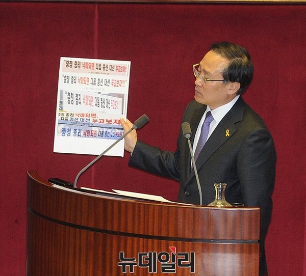 새정치민주연합 홍영표 의원이 13일 오후 서울 여의도 국회 본회의장에서 열린 정치분야 대정부질문에서 이완구 총리에게 질의하고 있다.