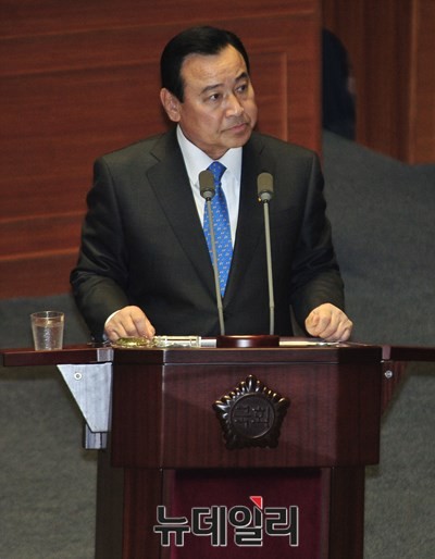 이완구 국무총리가 13일 오후 서울 여의도 국회 본회의장에서 열린 정치분야 대정부 질문에서 의원의 질의에 답하고 있다