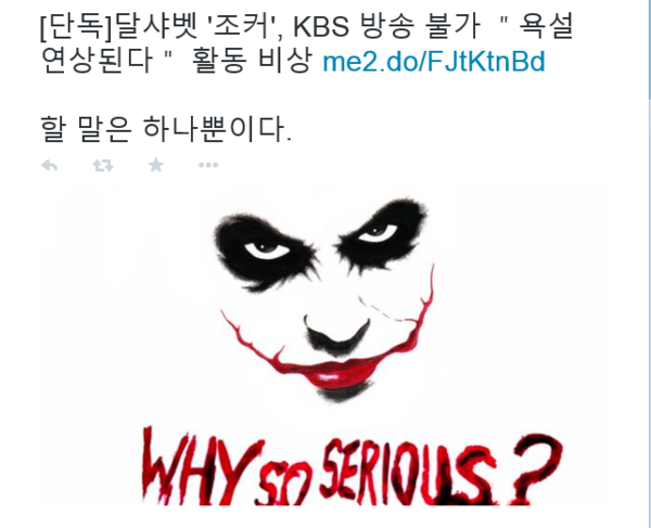 이를 접한 네티즌들은 KBS가 달샤벳 신곡 '조커' 불가판정을 내린 것에 대해 이해할 수 없다며 조롱의 글을 올리고 있다. 특히, 달샤벳 팬은 SNS에 "Why So Serious?"라는 글과 함께 조커 이미지를 올려 불만을 드러냈다.