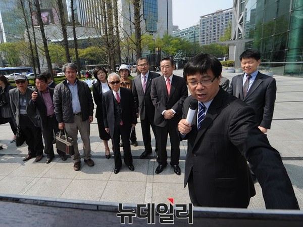 (사)월드피스자유연합이 15일 오후 서울 종로구 공평동 종로타워 앞에서 [광복 70주년 기념 역사탐방 사진전] 오픈 기자회견을 열었다.