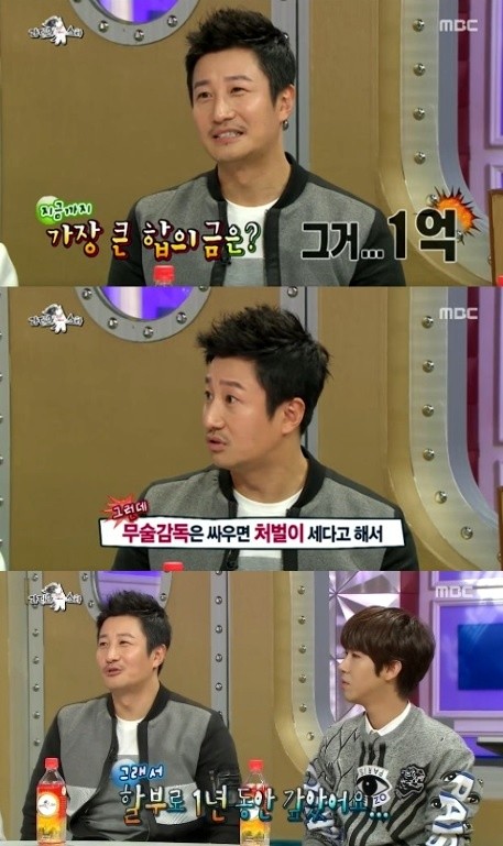 이훈이 싸움으로 인한 합의금을 언급했다.지난 15일 방송된 MBC '황금어장-라디오스타'는 '앵그리 피플-화가 난다' 특집으로 김흥국, 김부선, 이훈, 제국의아이들 광희가 출연해 솔직한 입담을 선보였다.이날 이훈은 MC들이 "한때 김창렬보다 합의금이 더 많다는 이야기가 있었다"고 말하자 "어설픈 무용담"이라며 "지금까지 물어준 합의금 중 가장 큰 금액은 1억이다. 할부로 1년 동안 갚았다"고 털어놨다.이어 "당시 무술감독님과 재활중인 프로야구 선수, 착한 개그맨이 있었다. 포장마차에서 술을 마시는데 옆에 체격 좋은 친구들이 시비를 걸었다. 계산을 하려고 일어나려는 순간 싸우게 됐다"고 설명했다.이훈은 "무술감독은 싸웠을 때 처벌이 세다고 하더라. 재활 중인 야구선수는 그곳에 있으면 안됐다. 그래서 내가 싸운 것"이라며 "무술감독님이 합의금을 나눠서 갚자고 했지만 그 뒤로 연락이 없더라"고 덧붙였다.[이훈 합의금 언급, 사진=MBC '라디오스타' 방송 캡처]