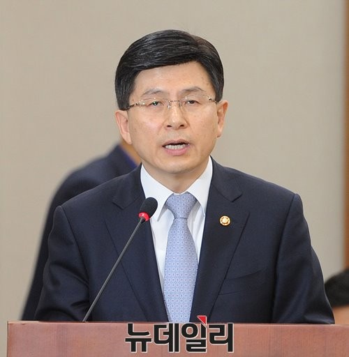 황교안 법무부 장관이 20일 국회에서 열린 법사위원회에서 `성완종 관련 불법자금 수수의혹'에 대해 현안 보고하고 있다.