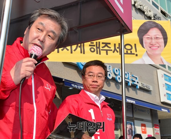 새누리당 김무성 대표를 비롯한 지도부가 22일 오후 성남 중원구 남한산성시장 입구를 찾아 성남 중원에 출마한 새누리당 신상진 후보를 지원했다.