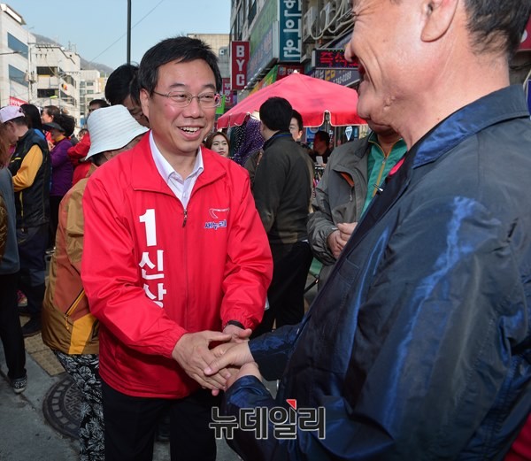 새누리당 김무성 대표를 비롯한 지도부가 22일 오후 성남 중원구 남한산성시장 입구를 찾아 성남 중원에 출마한 새누리당 신상진 후보를 지원했다.
