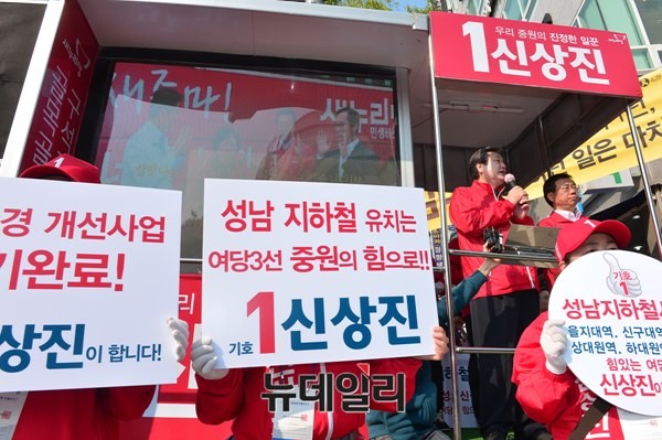 새누리당 김무성 대표를 비롯한 지도부가 22일 오후 성남 중원구 남한산성시장 입구를 찾아 성남 중원에 출마한 새누리당 신상진 후보를 지원했다.