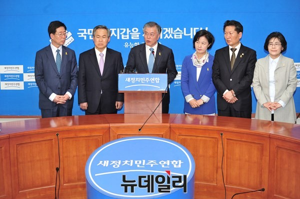 • 문재인 새정치민주연합 대표가 23일 오후 서울 의여도 국회의사당 당대표실에서 [성완종 리스트]와 관련해 긴급 기자회견을 갖고 있다.
