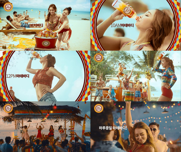 지난해 '태양의 마테차' TV 광고가 탄탄한 몸매와 구릿빛 피부, 최고의 가창력 덕에 '라틴 디바'로 인정받은 효린의 목소리 출연으로 화제를 모았다면, 올해의 TV 광고는 씨스타 멤버 4명이 모두 출연해 '태양의 마테차'와 함께 해변을 즐기는 모습을 담아 흥겨움을 더한다.