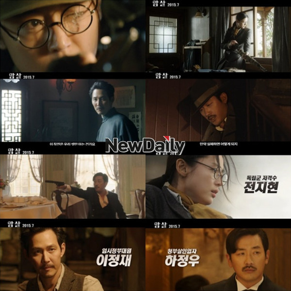영화 '암살'이 7월 개봉을 확정하고, 화려하고 박진감 넘치는 전개로 단번에 시선을 사로잡는 티저 예고편을 최초 공개했다.'타짜', '도둑들' 최동훈 감독의 신작 '암살'은 1933년 상해와 경성을 배경으로 암살작전을 위해 모인 독립군들과 임시정부대원, 그리고 청부살인업자까지 조국도 이름도 용서도 없는 이들의 서로 다른 선택과 운명을 그린 작품.이번에 공개된 티저 예고편은 1933년 화려한 상해의 밤거리와 조국이 사라진 경성을 배경으로, 강렬한 총성과 함께 그곳에서의 암살작전을 예고한다.결연한 눈빛으로 첫 총성을 울리며 자신의 임무를 묻는 전지현은 '암살'에서 굳은 신념을 지닌 '독립군 저격수'로 분해 관객들의 이목을 집중시킨다. '임시정부대원' 이정재는 냉철함이 느껴지는 눈빛으로 긴장감을 자아내고, 하정우는 거침없이 총을 겨누는 '청부살인업자'로 특유의 카리스마를 과시한다.여기에 하정우의 파트너 청부살인업자 오달수와 독립군 진영의 '속사포' 조진웅까지 더해져 풍성한 볼거리로 시선을 사로잡는다. 또, 암살작전을 둘러싸고 각각의 인물들이 얽히고 설키면서 벌이게 되는 이야기의 시작과 박진감 넘치는 액션은 예측불허의 긴장감을 불러일으킨다.영화 '암살'은 오는 7월 개봉 예정이다.['암살' 전지현 이정재 하정우, 사진=영화 '암살' 티저예고편 캡처]