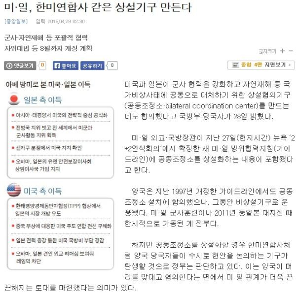 아래는 2015년 4월29일자 조인스닷컴 보도를 캡처한 것이다 <주>