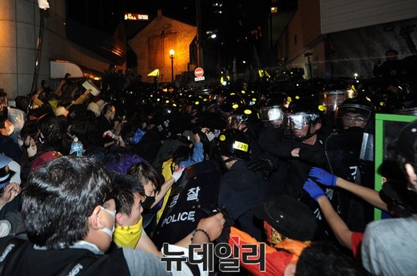 [포토] 경찰과 몸싸움 벌이는 시위대