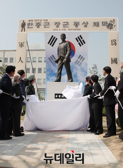 안중근 장군 동상 제막식이 광복 70주년을 기념하여 1일 오전 서울 노원구 화랑로 육군사관학교에서 열렸다. 육사 안중근 장군 동상은 경기도 부천과 전남 함평군에 이어 국내 3번째로 건립됐다.