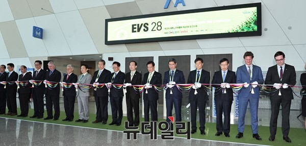 세계전기자동차학술대회및전시회(EVS28)개막식이 4일 오전 경기도 고양시 킨텍스 제2전시장에서 개최 됐다.EVS28은 세계전기자동차협회와 아시아태평양전기자동차협회(EVAAP)주최, 한국자동차공학회(KSAE)주관, 북미전기자동차협회(EDTA)와유럽전기자동차협회(AVERE)협력, 환경부, 산업통상자원부, 미래창조과학부, 국토교통부후원으로개최됐다.이날 개막식에는 윤대성 EVS28 전시후원 위원장, 타케히코 키쿠치 한국닛산 사장, 이우종 LG전자 사장, 래리 니츠 지엠 부사장, 세르지오 호샤 한국지엠 사장, 남경필 경기도지사, 김무성 새누리당대표, 선우명호 EVS28 대회장, 이기상 현대·기아자동차 전무, 질 노만 르노 아시아 태평양 지역 부회장, 프랑스와 프로보 르노삼성자동차 사장, 브리타 제에거 벤츠코리아 사장, 조에리 드 리데르유럽 전기자동차협회 회장 등이 참석해 자리를 빛냈다.