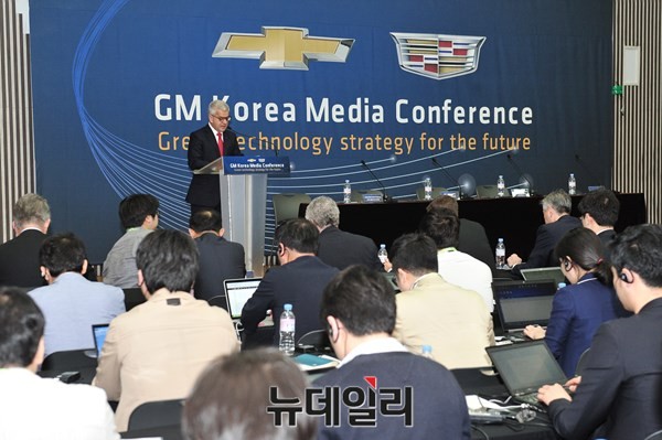 세르지오 호샤 한국GM 사장이 4일 오후 경기도 일산 킨텍스서 열린 세계 전기차학술대회(EVS28) 기자간담회에서 차세대 볼트 출시 계획을 밝히고 있다.