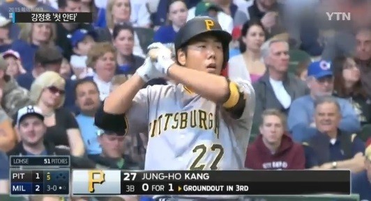 이날 강정호는 5타수 2안타 1타점 1득점을 추가해 시즌 타율을 0.281(32타수 9안타 7타점 2볼넷)로 끌어올렸다. 타율 0.360은 숀 로드리게스(0.385)와 토니 산체스(0.375)에 이어 팀 내 3번째로 높은 타율이다.
