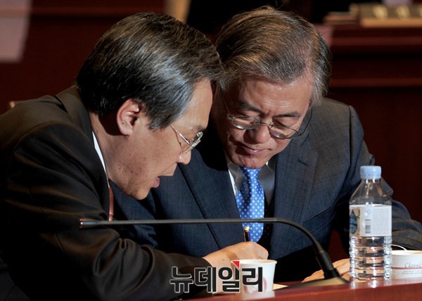 [포토] 이야기 나누는 문재인 대표와 우윤근 원내대표