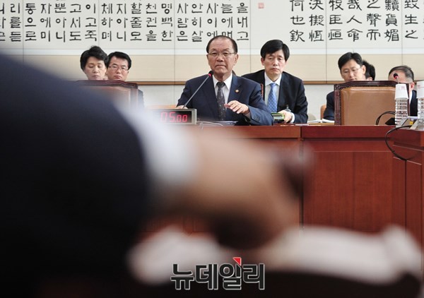 황우여 사회부총리 겸 교육부 장관이 6일 오후 서울 여의도 국회에서 열린 법제사법위원회 전체회의에 출석해 의원들의 질의를 듣고 있다.