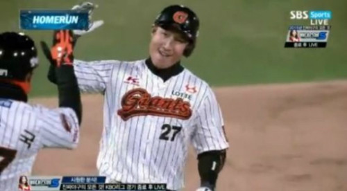 롯데 자이언츠 임재철의 결승 스퀴즈로 팀이 승리했다.