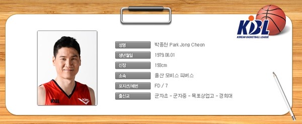 【뉴데일리 스포츠】프로농구 울산 모비스 피버스에서 활약했던 포워드 박종천(36)이 유니폼을 벗고 지도자로 변신할 것이라고 밝혔다. 지난 12일 은퇴를 공식 선언한 박종천은 부산 kt 소닉붐 코치로 새 출발할 예정이다.