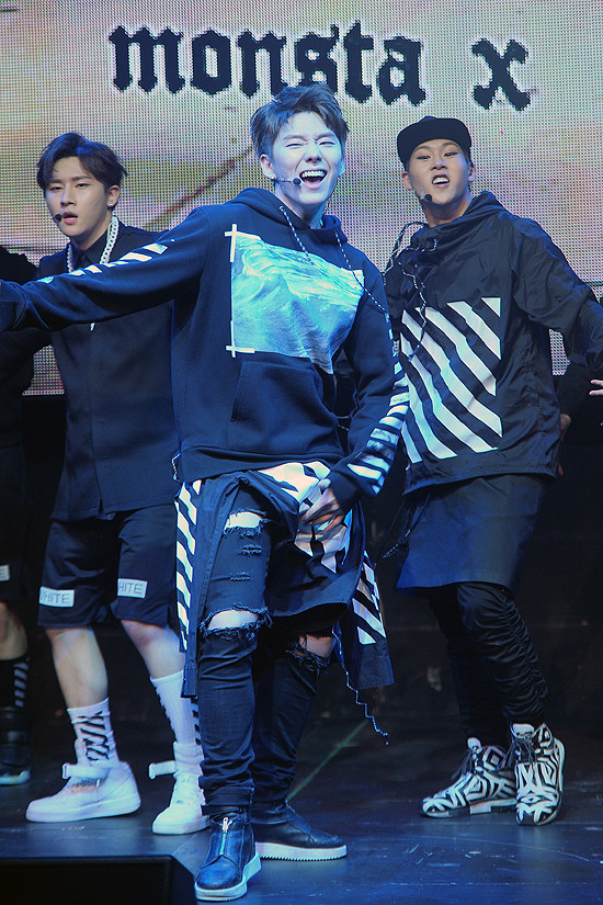 그룹 몬스타엑스가 13일 오후 서울 마포구 서교동 롯데카드 아트센터에서 열린 첫 번째 앨범 '트레스패스(TRESPASS)' 데뷔 쇼케이스를 개최했다. 이날 쇼케이스 MC로 씨스타 효린, 소유가 맡은 것.