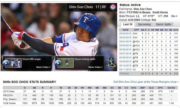 추신수의 타율은 현재까지 2할2푼9리를 기록을 계속 갱신중이다.