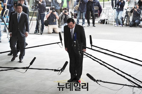 고 성완종 전 경남기업 회장으로부터 3000만원을 받았다는 의혹이 제기된 이완구 전 국무총리가 소환 조사를 받기위해 14일 오전 서울 서초구 서울고등검찰청 청사로 들어가고 있다.