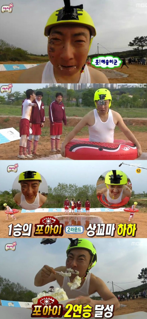 '줄다리기 케이크 먹기' 대결에서 박명수는 18살 어린 광희를 힘으로 제압, '포아이'라는 새로운 별명까지 얻었고, 이어 하하와 유재석까지 꺾어 연속 3연승을 일궈냈다. 박명수는 그리고 자신보다 14kg이나 많이 나가는 정형돈과의 대결에서는 생각지도 못한 전술로 또 다시 승리를 거머쥐었다.