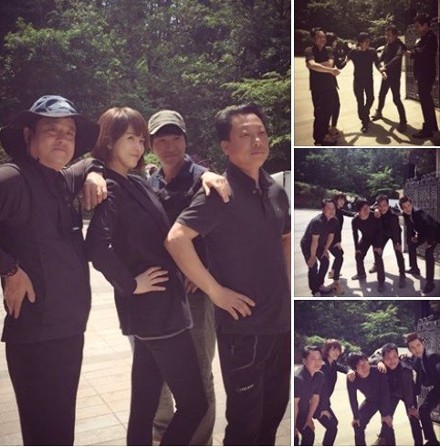 사진 속의 김선아는 촬영 감독이하 스텝들과 함께 어깨동무를 하고 허리에 손을 올린 채 즐거운 표정을 짓고 있다. 김선아는 "우리는 복면검사 B팀 이에요! 화창하게 햇살나는 날 이런거 부끄러워서예~~~ "라며 "적도의 ... 그 !! 남자! 김용수 감독님, 촬영 조명 감독님!, 그리고 우리 '복면검사' 하대철 검사님 과 함께....... 오늘도 즐거운 하루요" 복면 검사 촬영장 소식을 전했다..