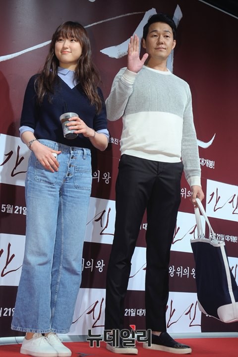 배우 류혜영, 박성웅이 18일 오후 서울 송파구 신천동 롯데시네마 월드타워점에서 열린 영화 '간신'(민규동 감독) VIP시사회에 참석해 포토타임을 하고 있다.