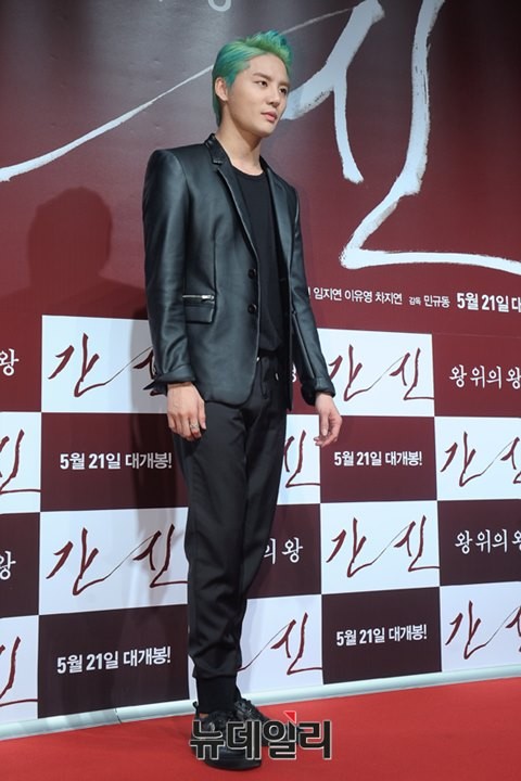 배우 김준수가 18일 오후 서울 송파구 신천동 롯데시네마 월드타워점에서 열린 영화 '간신'(민규동 감독) VIP시사회에 참석해 포토타임을 하고 있다.